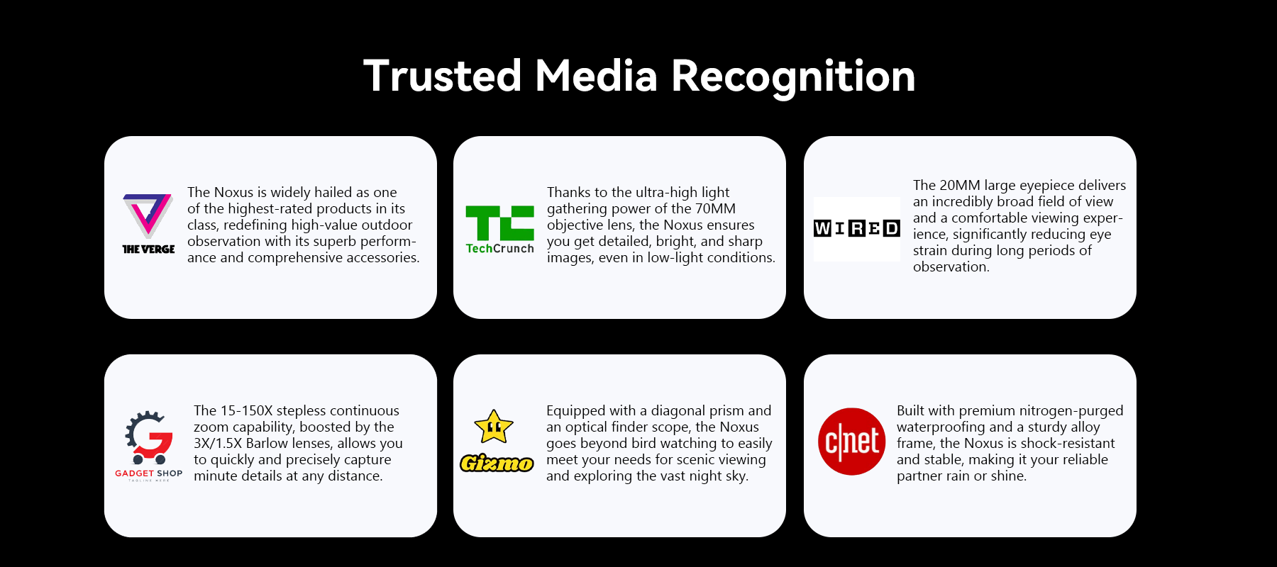 This led to Noxus. The brand promises to use advanced optics and precision engineering to deliver clear, crisp, and comfortable astronomical observations.Noxus’s mission: To help everyone explore the universe with clarity, ease, and precision.